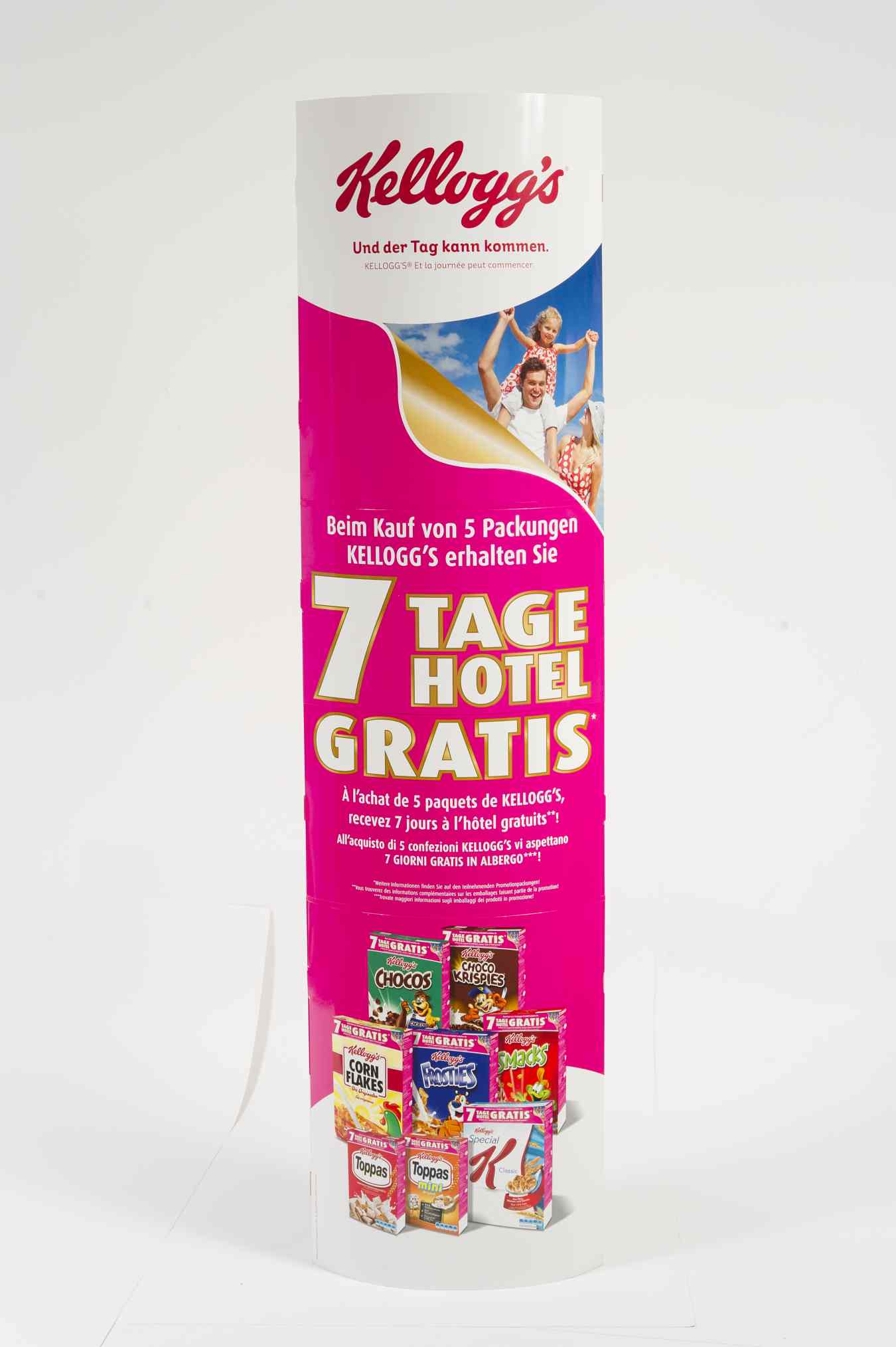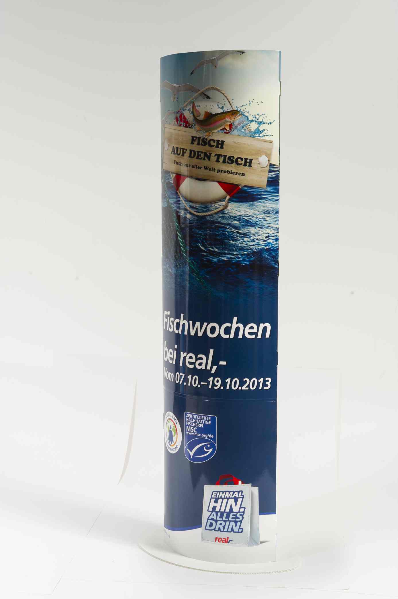 Die faltbare Werbesäule, ob oval oder rund, ist heutzutage in Getränkemärkten und Einkaufspassagen nicht mehr wegzudenken.
